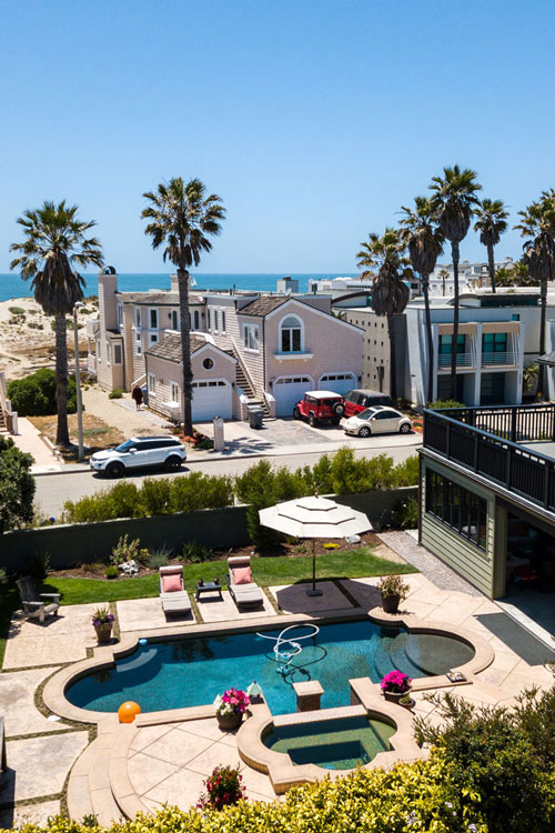 One of best off-beachfront homes at Mandalay. Recent top-notch remodeled interior and exterior. Great curb appeal. Very "smart house," can do many house controls and commands via mobile phone. All lights are LED with dimmers. Great floor plan. 4bdrm + 3bath. The master bedroom suite is first class and has large sunny deck that over looks the pool area and some ocean view. Downstairs living room, dining area, and stylish kitchen adjacent to spacious open den/tv room and very unique outside covered kitchen/bar-b-que with large sitting and dining area. Gated private backyard with in-ground sparkling pool and spa with 2yr old heater and pump. Plush landscaping throughout with full automatic drip system. Modern alarm system with cameras. Braswell Water Quality System to all interior fixtures. Two new a/c units, 3 car garage with a car lift = room for 4 cars in garage, and room for 36ft long RV parking pad. All of this on large, very rare, 9674 SF lot, and across the street is the beach!